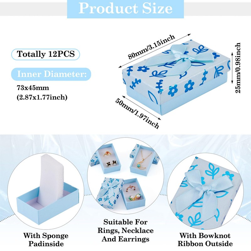 - Package Include----12pcs Jewelry packaging boxes. About 3.15 x 1.97 x 0.98 inch (8x5x2.5cm), inner diameter: 2.87 x 1.77 inch. (7.3x4.9cm).