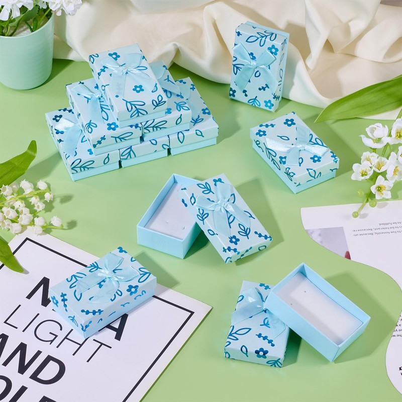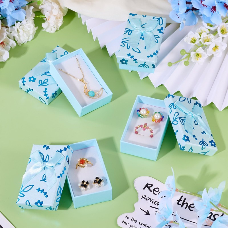 - Design----Each lid of the rectangle jewelry box is decorated with a bow for a elegant look. The light cyan flower leaf pattern present Box is especially suitable for packing festival present.
