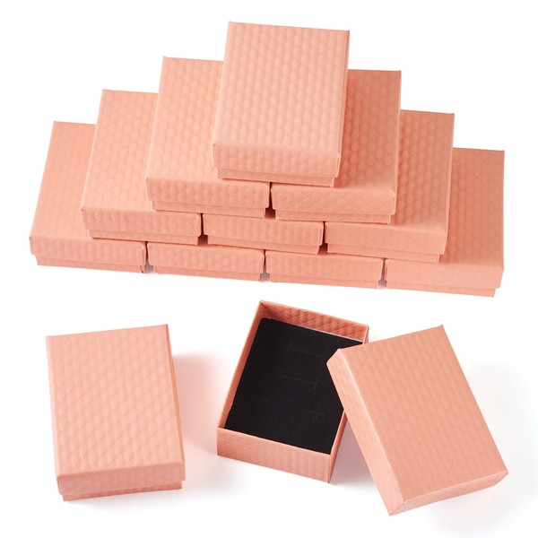 Craftdady 12Pcs Pink Rectangle Jewelry Boxes Diamond Pattern Cardboard Paper Present Boxes with Lids Necklace Pendants Earring Ring Empty Display Boxes for Festival Present Packing Jewelry Display