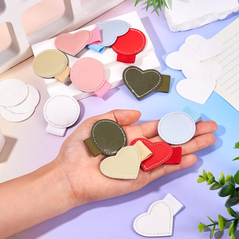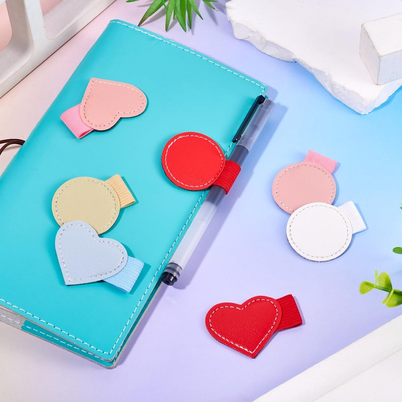 Craftdady 12Pcs Self-Adhesive Leather Heart Pen Holder with Pencil Elastic Loop PU Leather Pen Clip Holder Sticker Pad for Notebooks Journals Clipboards Calendars Creative Accessories