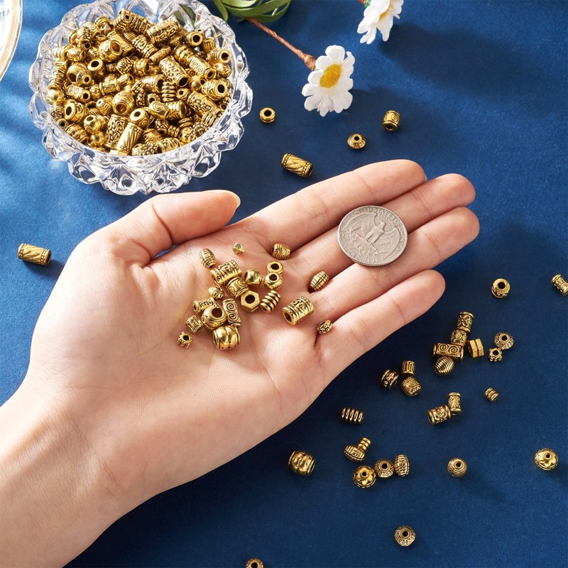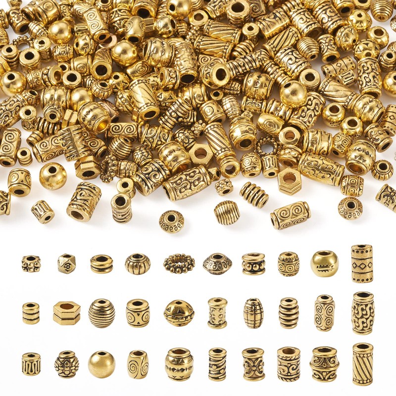 Craftdady 300Pcs Antique Golden Tibetan Alloy Spacer Beads 30 Styles Assorted Polygon Column Rondelle Bicone Barrel Hexagon Round Tube Beads for DIY Craft Jewelry Making