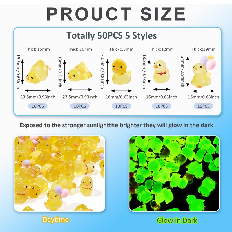 - Premium Material: These small yellow ducks are made from luminous resin which is strong, waterproof and resistant to fading, it also lasts longer and supports your miniature landscapes for longer, but it needs to be placed in the sunlight to absorb the light so that it glows in the dark