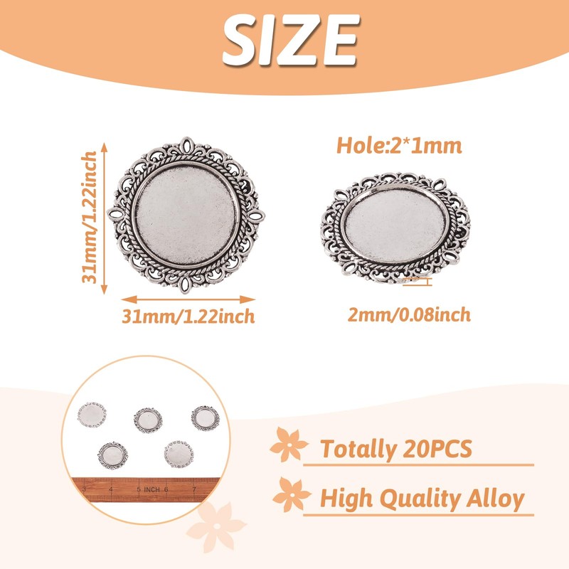 - Wide Application -- Blank bezel pendant trays can be used to make unique photo pendants, and dangle them to delicate necklaces, bracelets, earrings, anklets, chokers, etc. Great for DIY jewelry crafts making. Best Fit for 20mm flat back flower/glass cabochons.