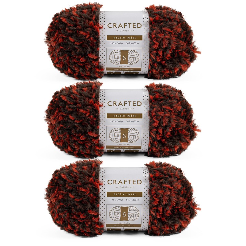 Crafted By Catherine Arctic Twist Yarn - 3 Pack (54 Yards Each Skein), Cherry, Gauge 6 Super Bulky