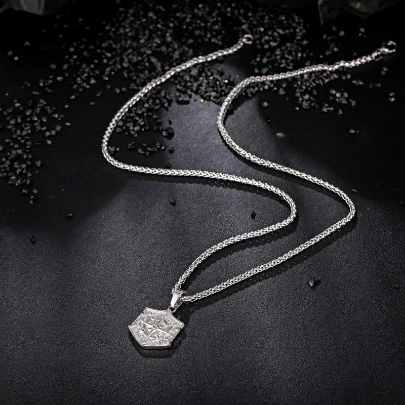 Crafted Compass Coin Necklace with Wheat Chain for Men, Mens Necklace with Compass Pendant Perfect for Travelers and Adventurers, 24 inch (24.00, shield-wheat chain-silver)