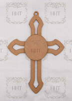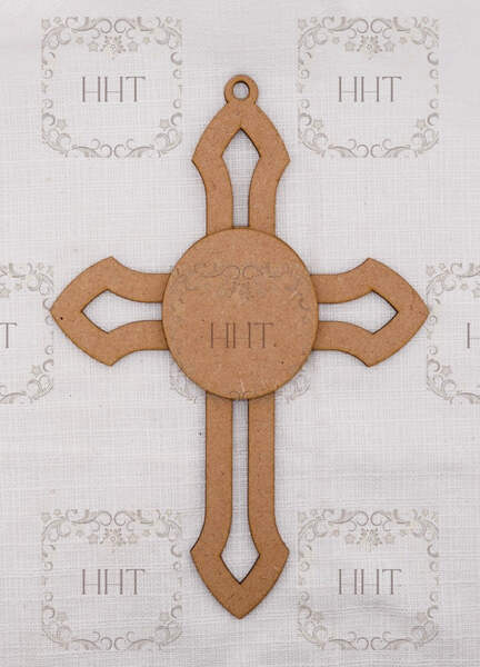 Handcrafted Holiday Traditions presents a Laser Cut MDF, Christmas Cross Ornament, Blank Base with Center Circle Overlay, 2 piece for Decoupage and Mixed Media. This piece measures 6.5"w x 9.25"l, 1/8" thick and has a center opening that measures 2.75"w x 3"l. Great for creative use with mixed media and decoupage, just waiting for a beautiful transformation. For best results recommend the base be primed before use. Our favorite Pentart primers and gesso products are available in our store.Laser Cut MDF, Christmas, Cross, Ornament, Blank, Base, Overlay Circle, Decoupage, Mixed Media, Crafts,, 6.5"w x 9.25"l, 1/8" , 2 piece