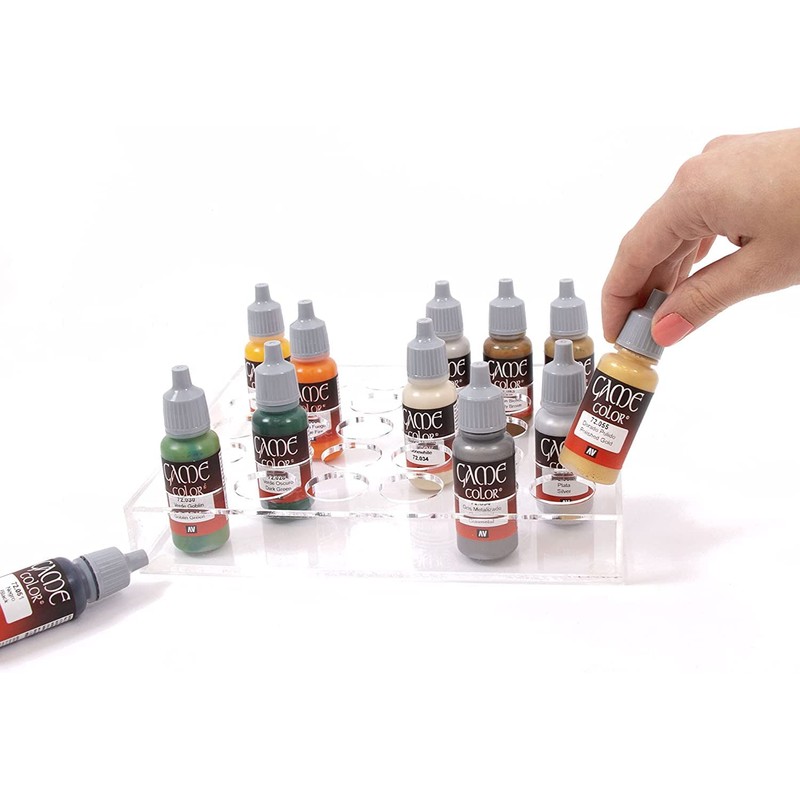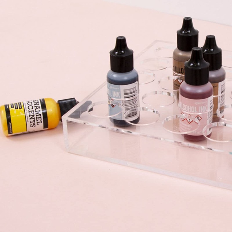 • Description: Paint stand or transparent presentation tray to store and organize your alcohol ink collection. Also suitable for storing other types of ink cans such as melting, acrylic or model building blocks, etc. The display tray holds 25 bottles of alcohol inks with a diameter of 2.5 cm.