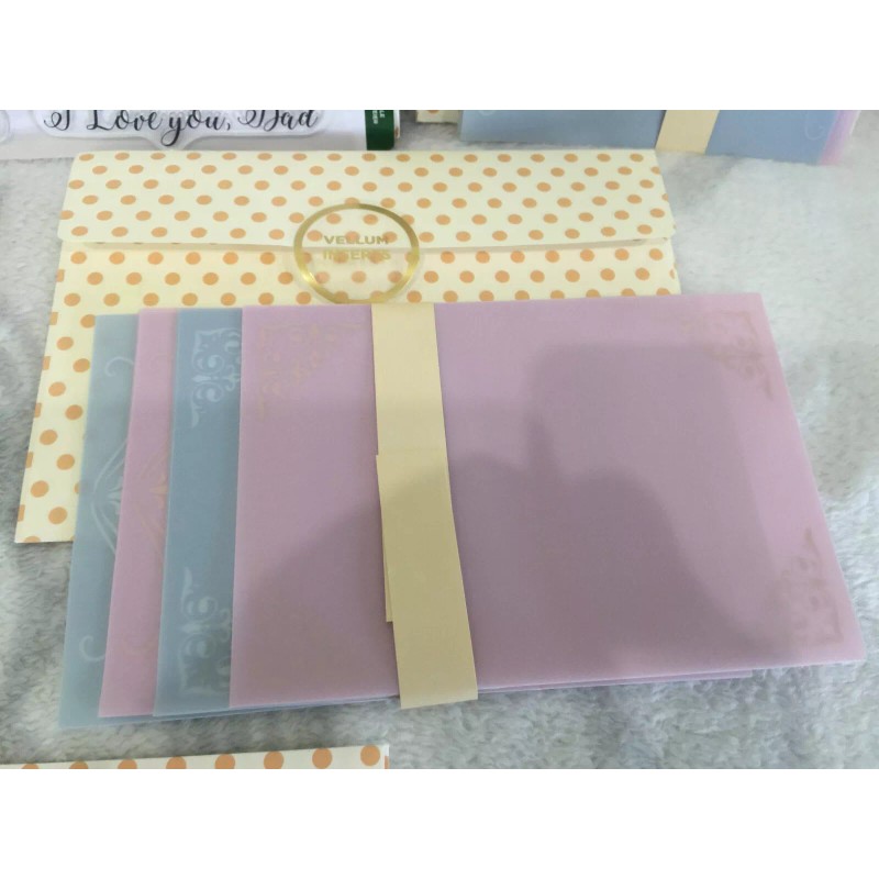 - 8 Vellum Inserts; 4 each of 3.74" x 5.74" and 4.74" x 6.74"