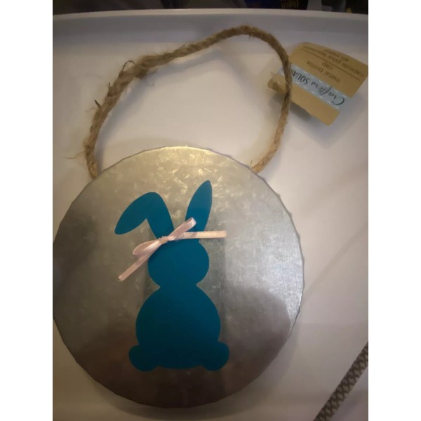 Crafter's Square Crafters Square Galvanized Easter Vinyl Bunny 6” Metal Sign W Hanging Rope