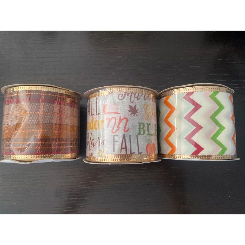 Crafter's Square ****NEW***Fall Thanksgiving Plaid Zig Zag Wired Ribbon 2.5" Lot Of 3