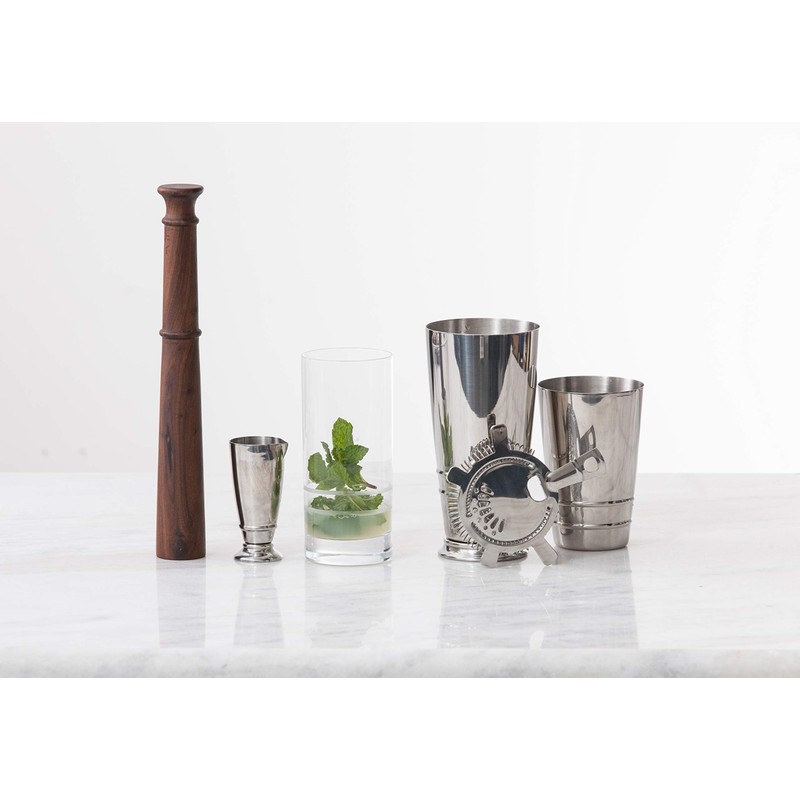 - Set includes: 2-piece Boston Shaker; Hawthorne strainer; jigger and muddler