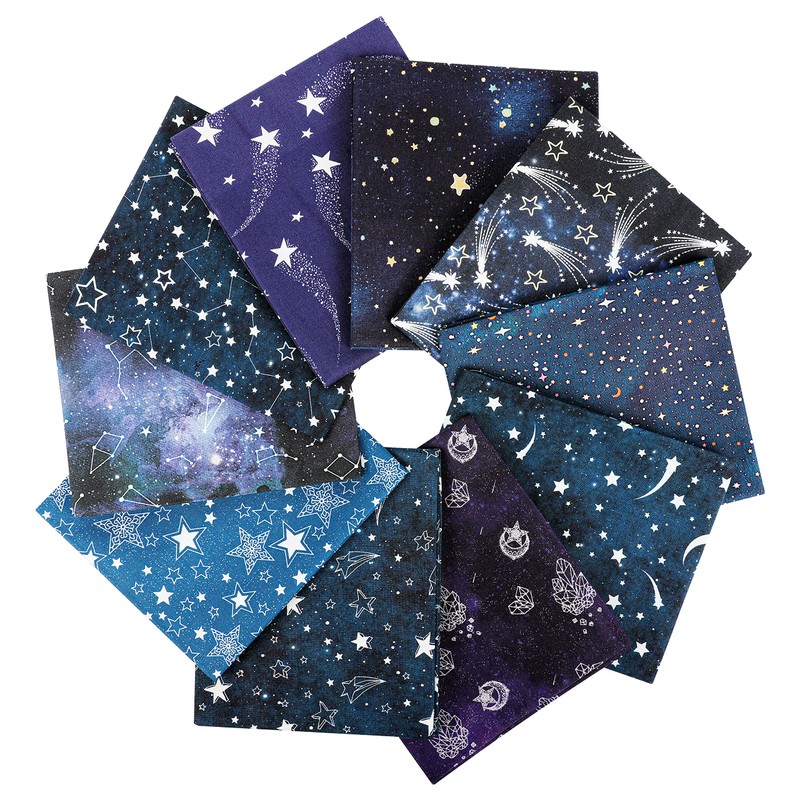 Craftido -21 Options- 100% Cotton Quilting Fabric Bundles 10pcs Fat Quarters 18"x21"(46x53cm) -Medium Weight 5.2 oz- for Quilting, Sewing Project, Patchwork, DIY Crafts - Starry Sky