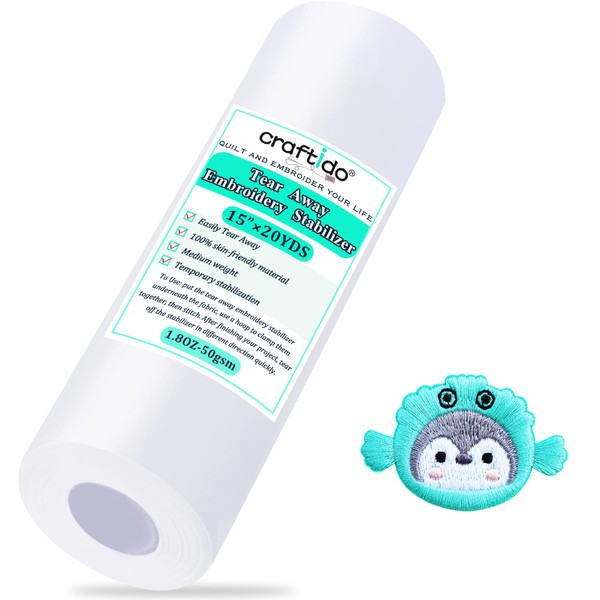 Craftido Tear Away Embroidery Stabilizer Backing 15" x 20 Yd/roll Compatible with Most Hoops 1.8oz Medium Weight for Machine Embroidery and Hand Sewing