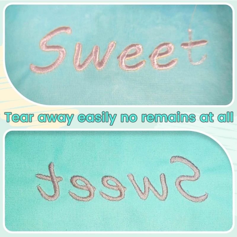 - Easily Tear Away After Embroidering: Tear away stabilizer only provide temporary stability when you are stitching. After you finish your embroidery projects, the embroidery stabilizer will be removed away easily by tearing off in different direction.
