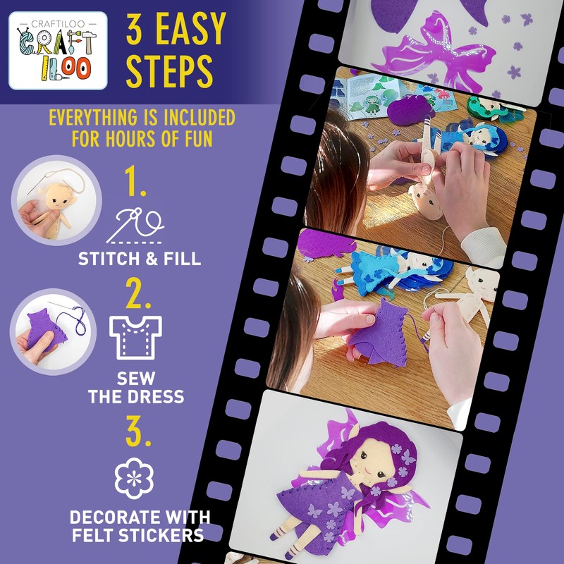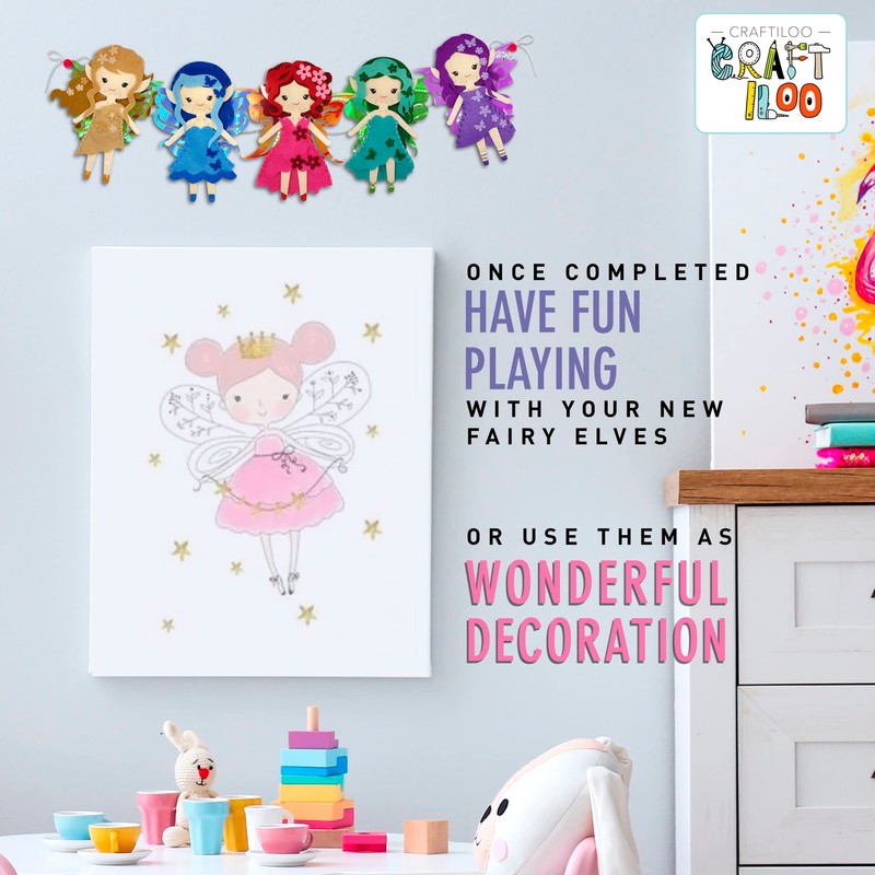 CRAFTILOO Fairy Elves Sewing Kit for Kids, Fun and Educational Fairytale Craft Set for Boys and Girls Age 7-12, Sew Your Own Felt Fairy Craft Kit for Beginners (Garden Rainbow Fairies Kit)