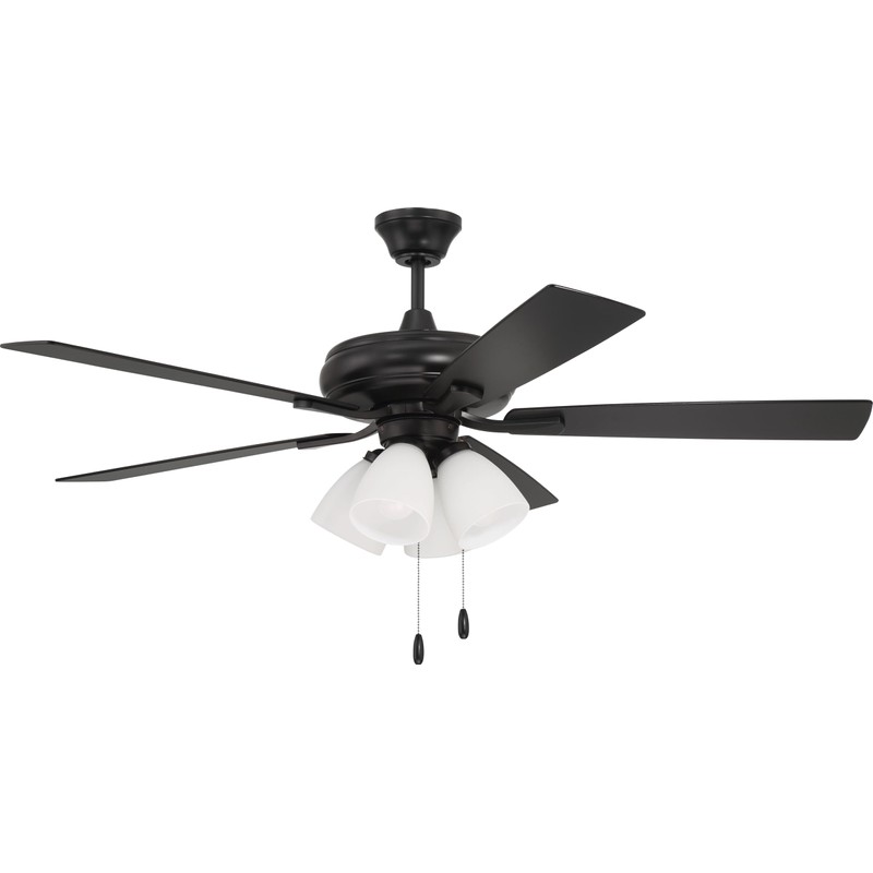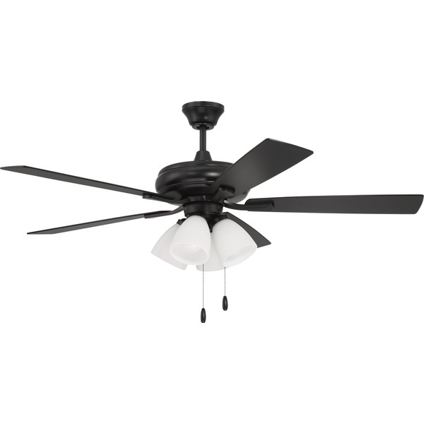 Craftmade ECF114FB5-FBGW Eos Frost Light 52" Ceiling Fan with LED Lights & Pull Chain, Flat Black