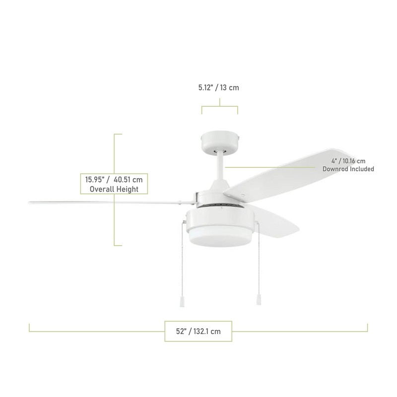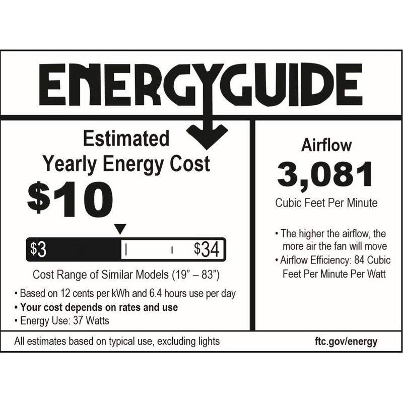 • FAN BLADES: 3 White / Ash Blades (52" Span / 12° Blade Pitch); CFM: 3081 (High Speed)