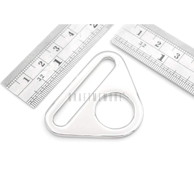 CRAFTMEMORE 2 Sets Fat Swivel Snap Hook with Triangle Rings Push Gate Lobster Claw Clasp for Purse Bags Sewing Accessories (1 1/2 Inches, Silver)