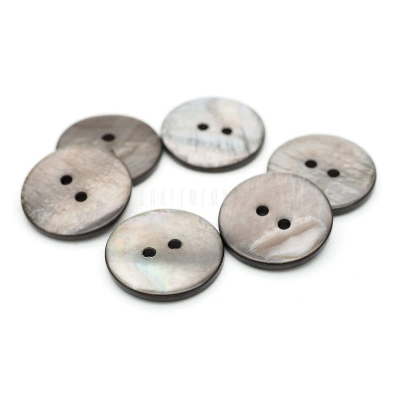 - 2 Holes Round Shell Buttons / 5 different sizes: 13mm (0.5"), 15mm (0.59"), 18mm (0.8"), 21mm (0.82"), and 25mm (1").