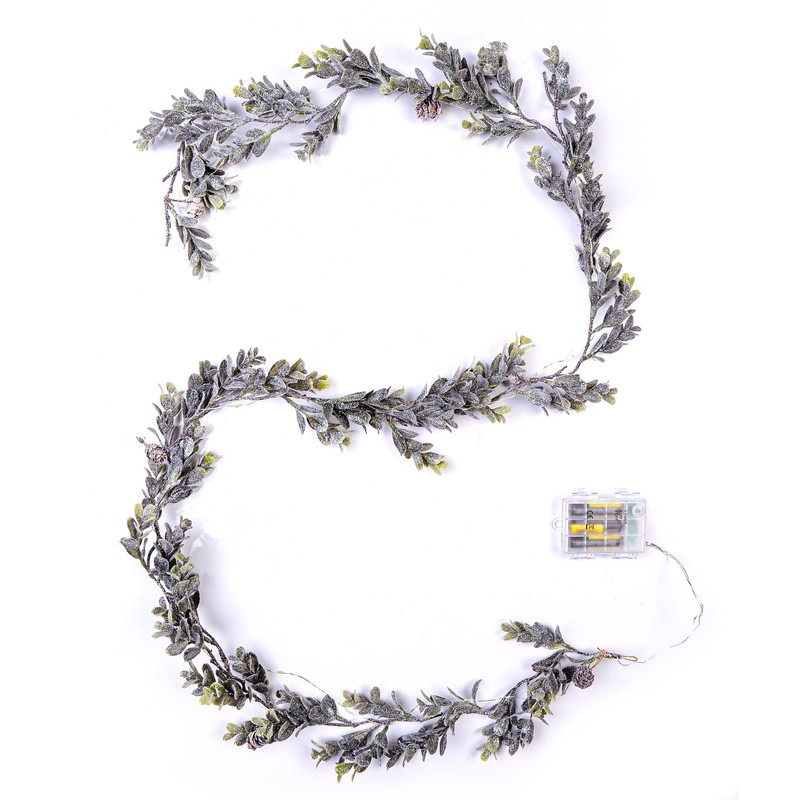 CraftMore Frosted Boxwood Garland with Lights 72 Inches