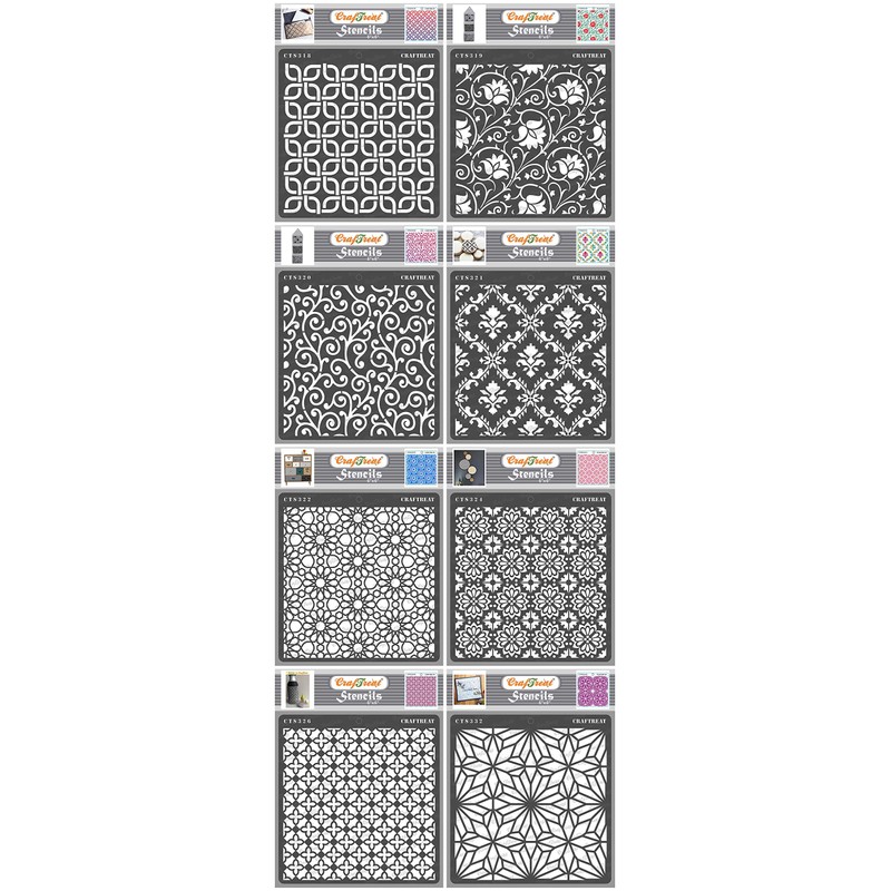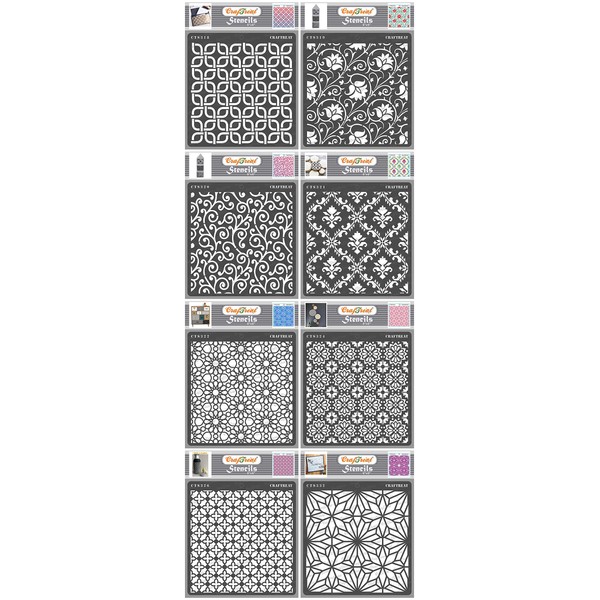 CrafTreat Background Pattern Stencils for Painting on Wood, Wall, Tile, Canvas, Paper, Fabric and Floor - Background Designs Bundle2 - 8 Pcs - 6x6 Inches Each- Reusable DIY Art and Craft Stencils
