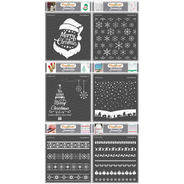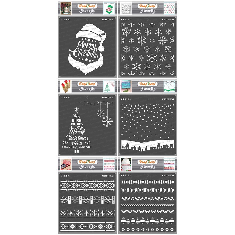 CrafTreat Merry Christmas Stencils for Painting on Wood, Canvas, Paper, Fabric, Floor, Wall and Tiles - Christmas Designs 6 Pieces Each 6 x Inch Reusable DIY Art Crafts for Christmas
