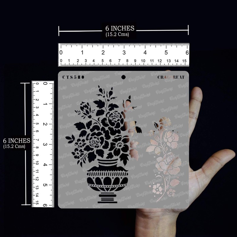 CrafTreat Reusable Flowers Stencils for Painting on Wood, Canvas, Cards, Paper, Fabric, Walls and Tile - Rose Vase - 6x6 Inches - DIY Art and Craft Stencils for Home Decor - Rose Flower Stencil
