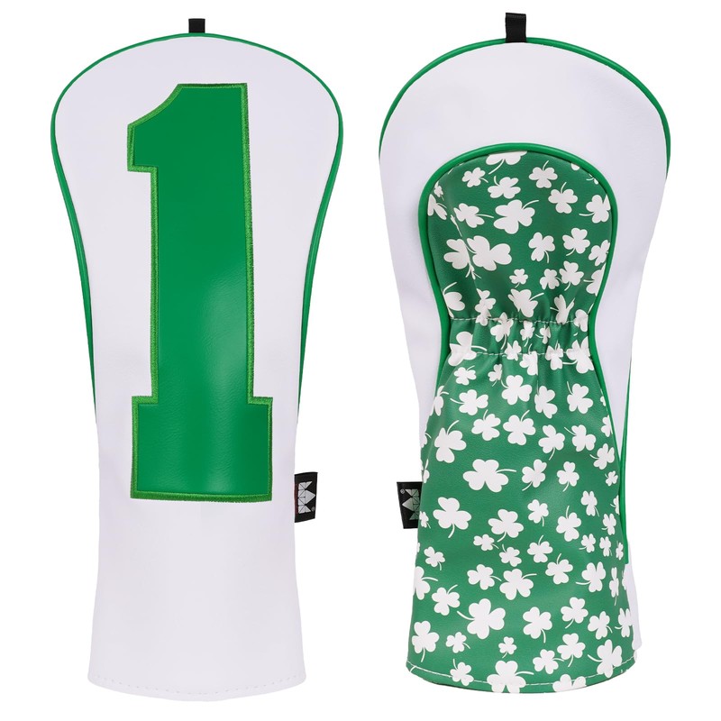 Craftsman Golf Lucky Clover Patterns with Large Green No. White Driver Headcover Head Covers Fits up to 460cc