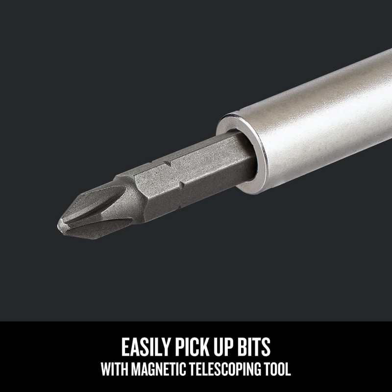 The 26-piece Multi-Bits Ratcheting Screwdriver has an ergonomic handle offering twisting force for three different applications, a speed zone for quick rotation, a torque zone for added grip in heavy-torque applications, and a precision tactile zone for tasks requiring more rotation control. A chrome-plated bar of the CRAFTSMAN screwdriver set resists corrosion.