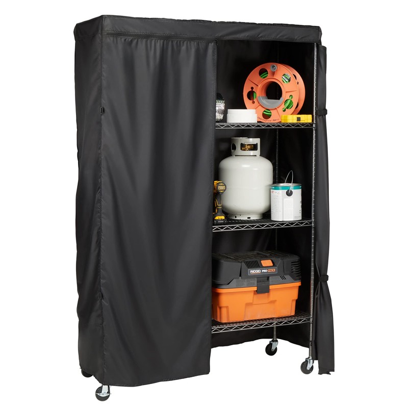 - Designed to cover garage shelves up to 48"W x 18"D x 72"H