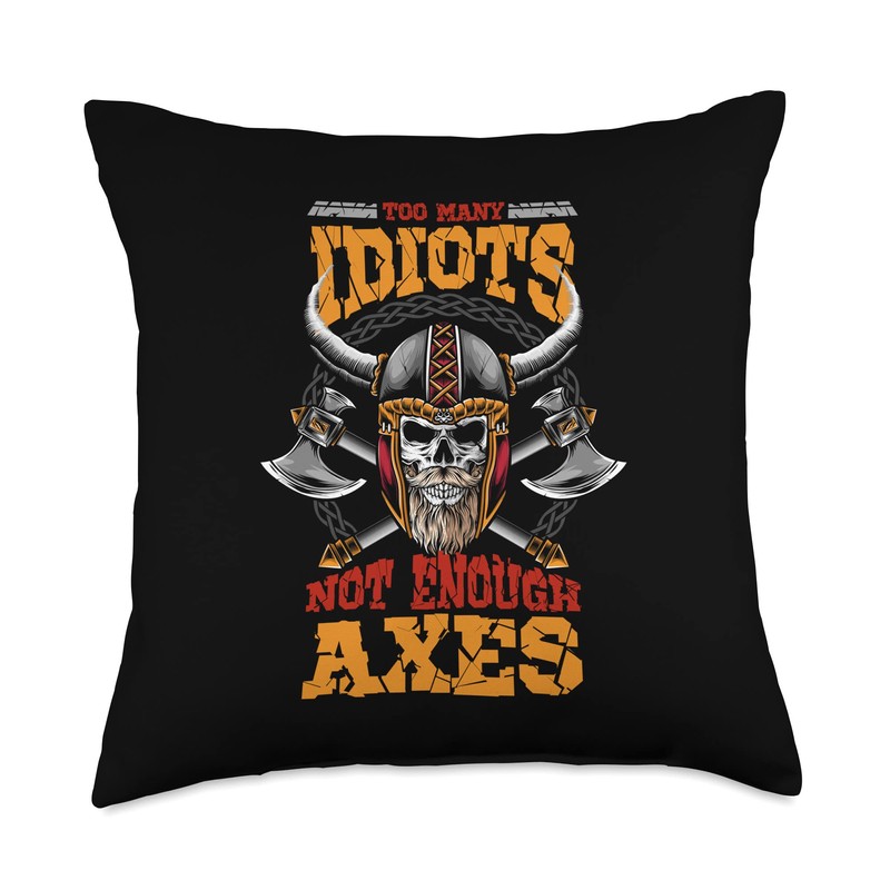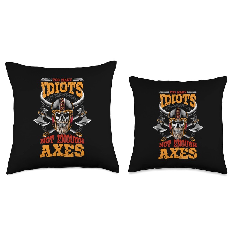 Craftsman tool set and Gardening tools lover Too Many Idiots, Not Enough Tool Axe Throw Pillow, 18x18, Multicolor