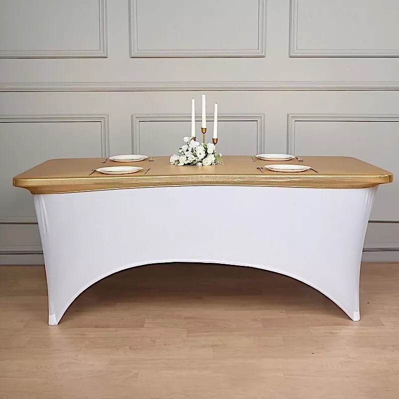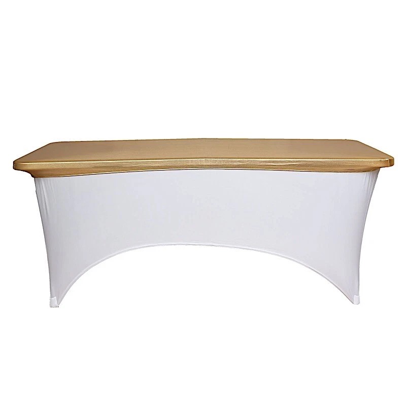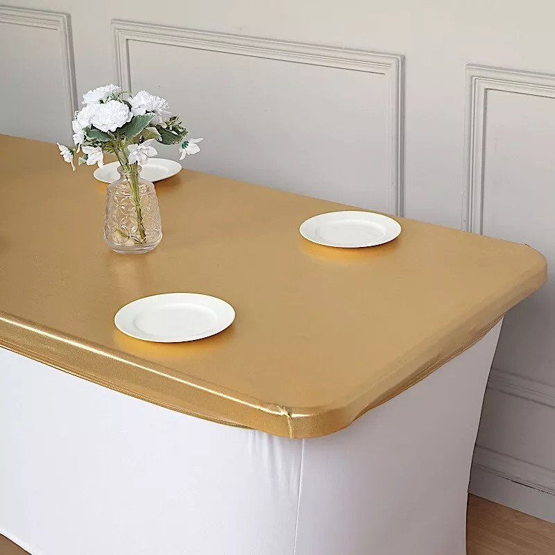 CraftsnFavors 6 ft GOLD Fitted Spandex TABLECLOTH Metallic Rectangular Table Top Cover Party
