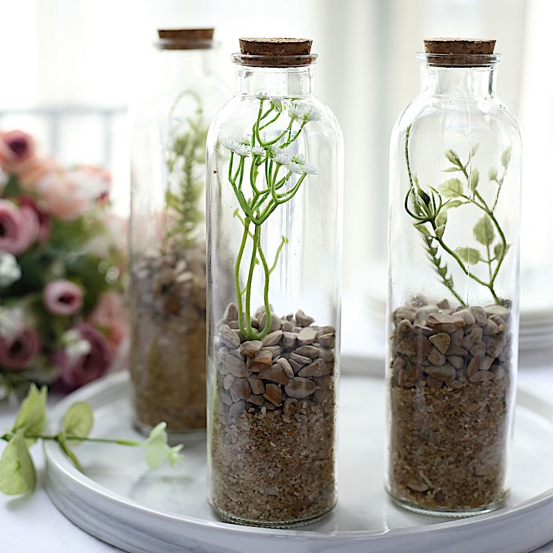 CraftsnFavors CLEAR 12 Round 16 oz Refillable GLASS BOTTLES Storage Jars Cork Stopper Party