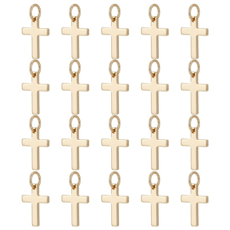 CRAFTYMELODY 20Pcs 18K Gold Plated Cross Charms Brass Cross Pendants Crucifix Pendants Golden Dangle Charms with Jump Ring for DIY Necklace Bracelet Earrings Jewelry Making Gift 12.5x9x1mm