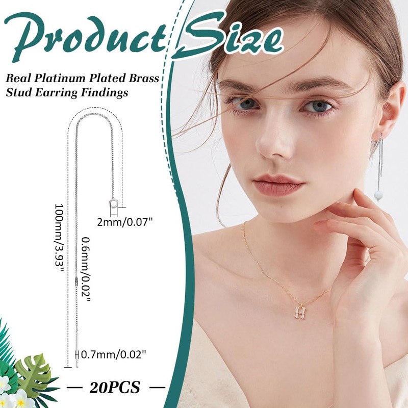 CRAFTYMELODY 20Pcs Ear Threads Brass Stud Earring Findings Platinum String Earring Threader with Open Loop 100mm Long Chain Tassel String Drop Earring Threader for Jewelry Making 0.7mm Pin