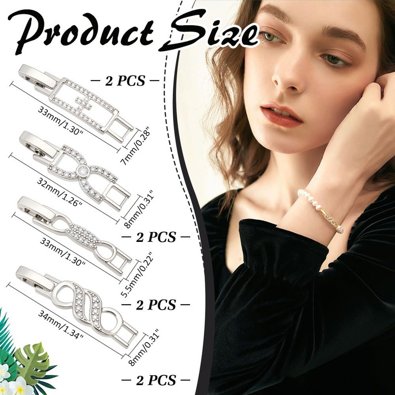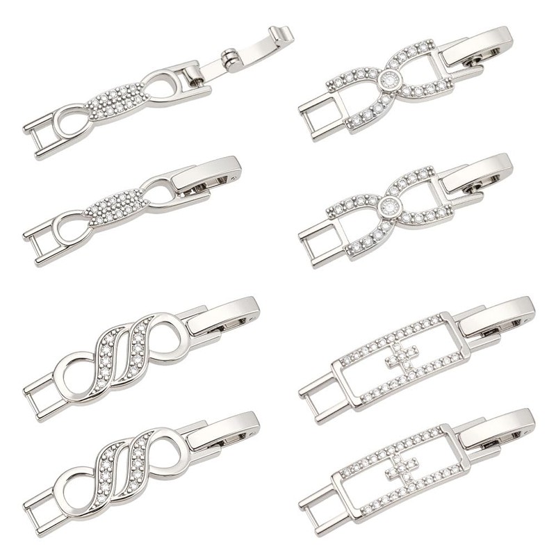 CRAFTYMELODY 8Pcs Fold Over Clasp 4 Style Brass Cubic Zirconia Extension Clasp Snap Lock Closure End Caps Watch Platinum Jewelry for Bracelet Necklace DIY Jewelry Making Findings Accessory