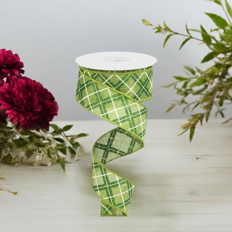 - Timeless Design: The green classic color of our Diagonal Glitter Check Wired Ribbon will always be in style. Its neutral tone makes it suitable for any creative or decorative venture you can think of. Let your imagination run wild and add a touch of sophistication to your crafts.