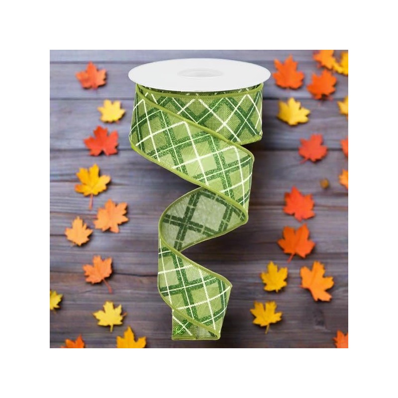Craig Bachman 1.5" Diagonal Glitter Check Ribbon: Moss Green (10 Yards) Fall Ribbon, Floral Arrangement, Crafting, Wreath Wired Ribbon