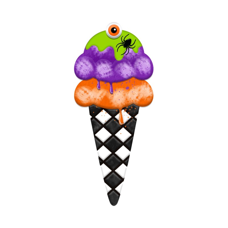 Craig Bachman 12" Metal Halloween Ice Cream Cone Sign, Halloween Tree Ornament, Wall Art, Garland, Wreath Accent Ornament Sign
