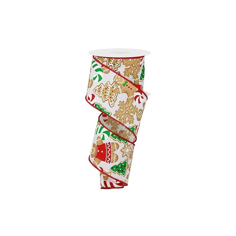 - Wrap this delightful gingerbread cookie on royal ribbon to celebrate the tastiest Christmas cookie around! This wired edge ribbon includes a multitude of gingerbread figures and trees, along with sweet candies throughout, making this ribbon compatible with many holiday themes! Consider matching this ribbon with ornaments, garland, and festive sprays and picks! Wired Edges RGE187927