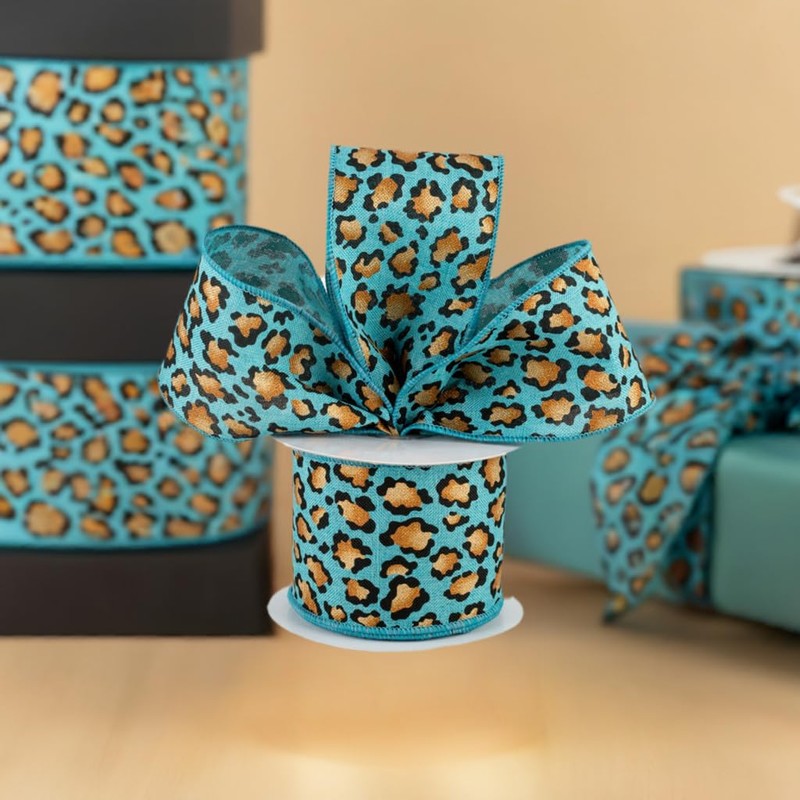 Craig Bachman 2.5" Metallic Leopard Print Ribbon: 10 Yards (Light Teal) Craft Floral Arrangement Gift Wrapping Wired Edge Ribbon