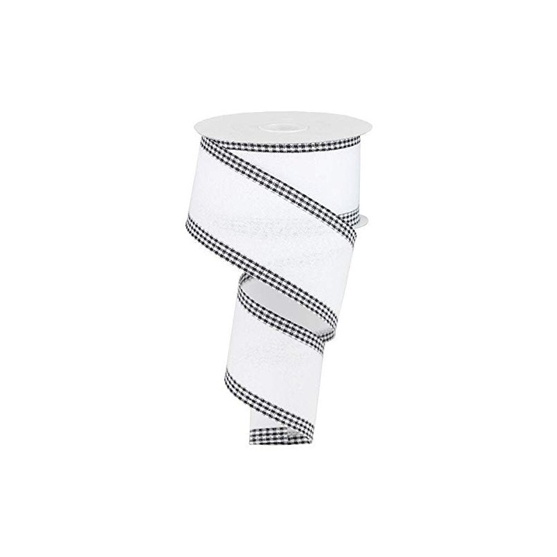 Craig Bachman 2.5" Royal Burlap Gingham Edge Ribbon: White (10 Yards) Craft Floral Arrangement Gift Wrapping Wired Edge Ribbon