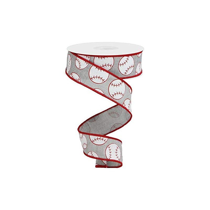 Craig Bachman Sports Glitter Wired Ribbon - 10 Yards (Baseball, Light Grey, 1.5")