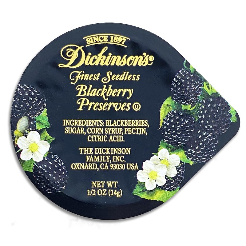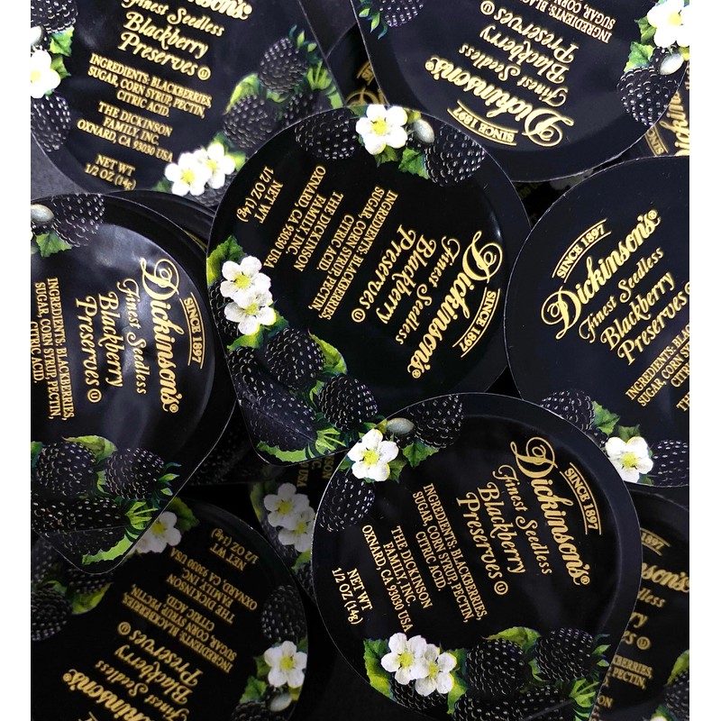 - DICKINSONS BLACKBERRY PRESERVES – Includes delicious blackberry preserves in single serve cups – great for on the go, travel, bed and breakfasts, vacation rentals, and to keep in your pantry for every day use!