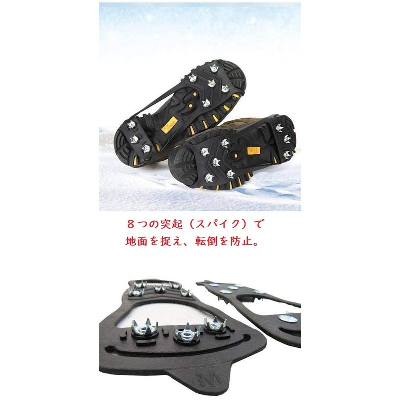 Crampons Crampons Anti-Fall Shoes, Anti-Slip, Freeze-Proof, Snow, Climbing, Fishing, Rocks, 8 Jaws, Lightweight, Chain Spikes, Spiked Shoes, Soles, Easy to Put on and Take off, Unisex, S Size (7.9 - 9.8 inches (20 - 25 cm))