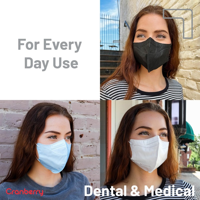 Cranberry 360 4 ply face mask features our revolutionary 360 design that provides complete full coverage protection. When opened, the mask forms a V-Shape that prevents Collapse and provides extra breathing volume. Our exclusive curved-edge design permits the mask to lay flat against the skin surface, which easily conforms to different face shapes. Together, the unique shape and curved edges form a complete 360 seal around the nose and mouth.
