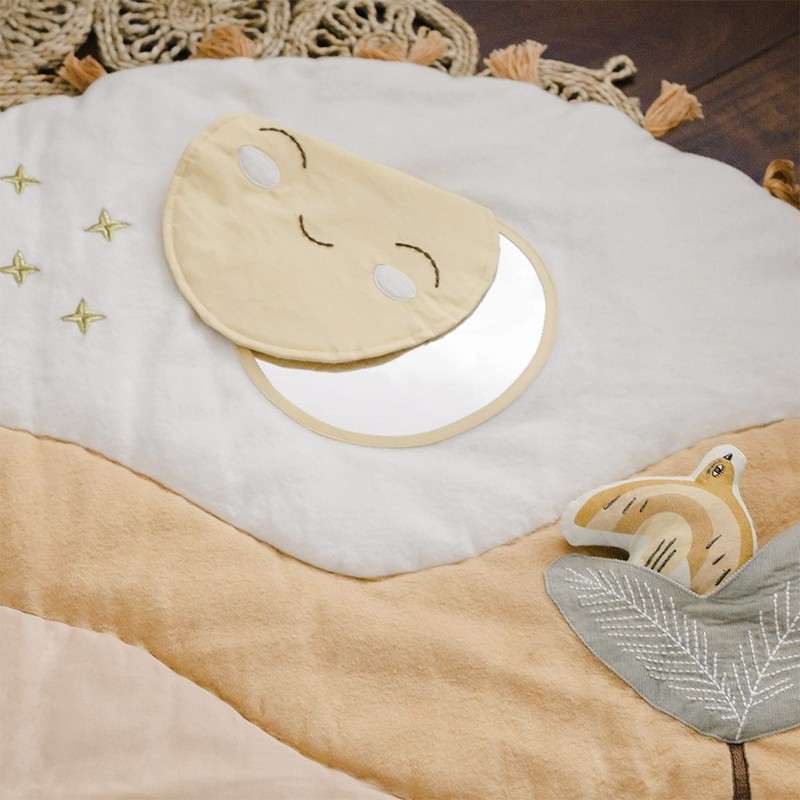 - NUSERY ESSENTIAL: Cheerful sunset design with hidden toys and pockets to encourage your baby's natural development and curiosity as they play