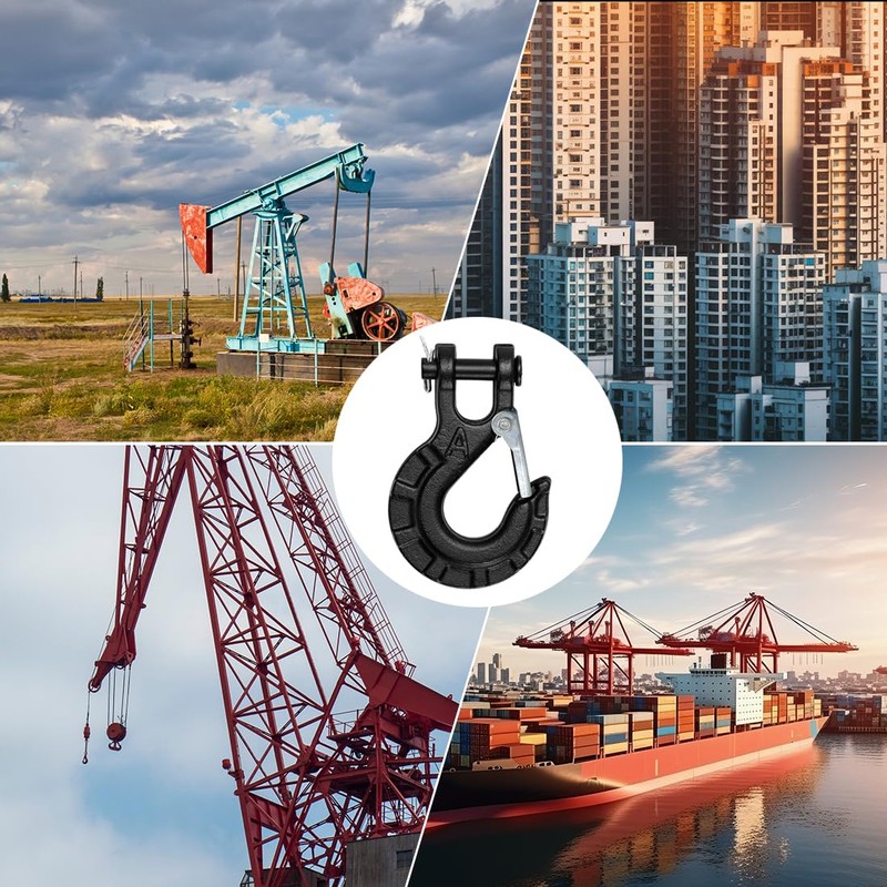- Safety lock design: the latch ensures that the rope, chain and accessories do not detach from the hook when the load is loose.