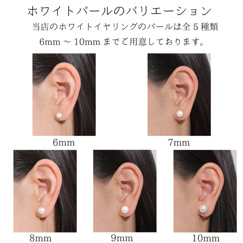 - (Size) Natural shell pearl earrings made in Japan: Pearl beads size 0.3 inch (8 mm); Material: Flower beads-grade polished natural shell pearls (artificial pearl); Earring fittings: Brass (rhodium plating); Cleaning cloth, mini drawstring included; Comes in a box case that is easy to store