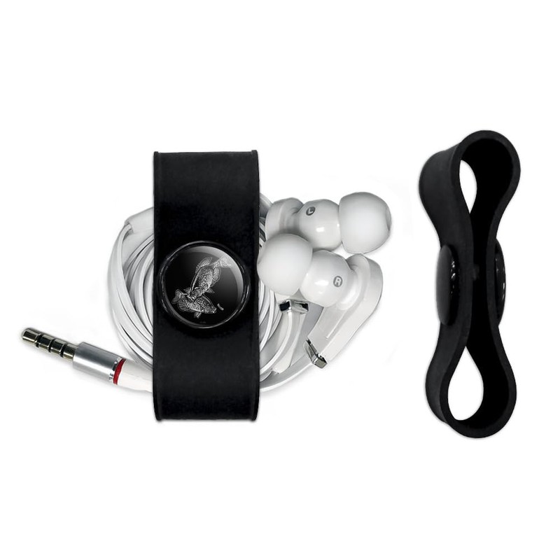 Crappie Illustration Headphone Earbud Cord Wrap - Charging Cable Manager - Wire Organizer Set of 2 - Black